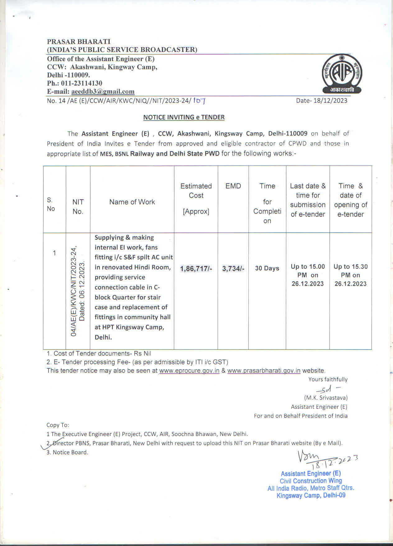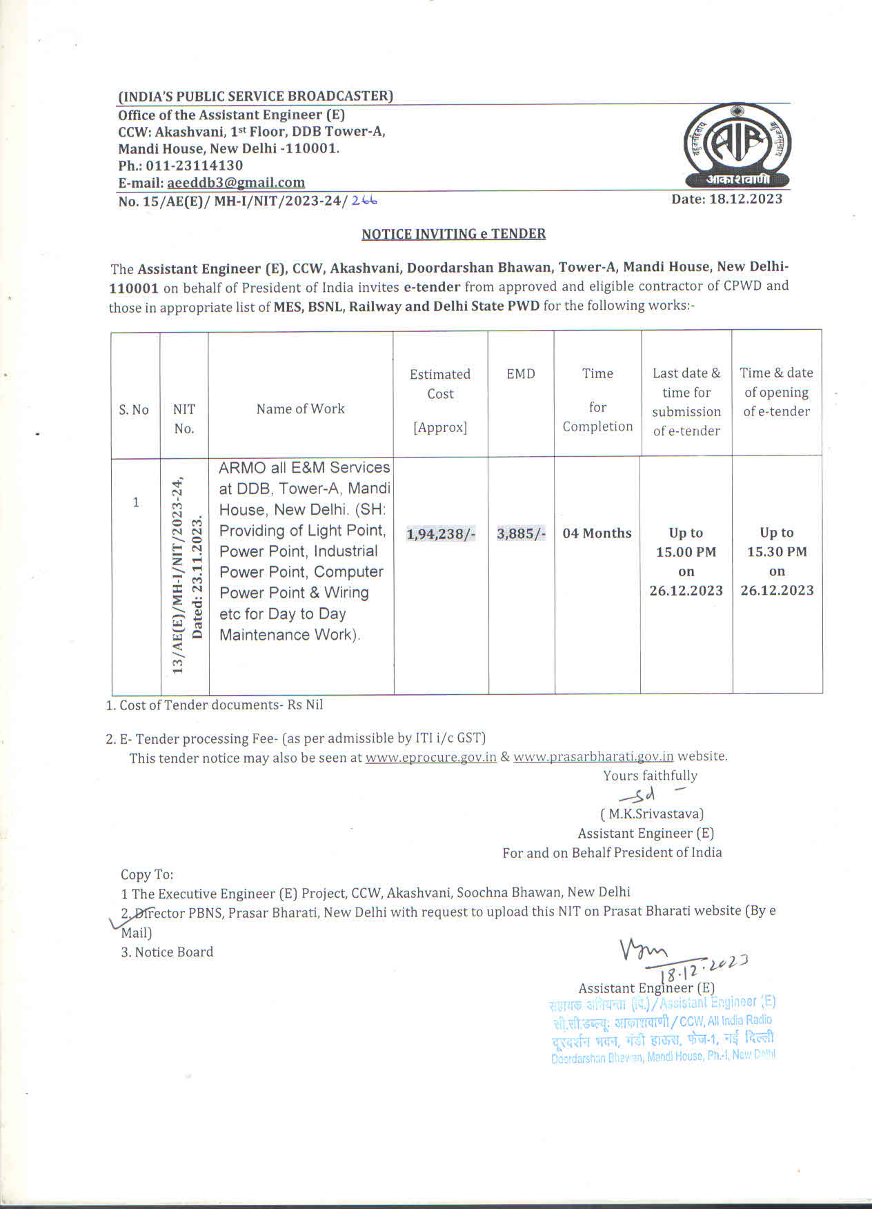 12/AE(E)/MH-I/NIT/2023-24 |