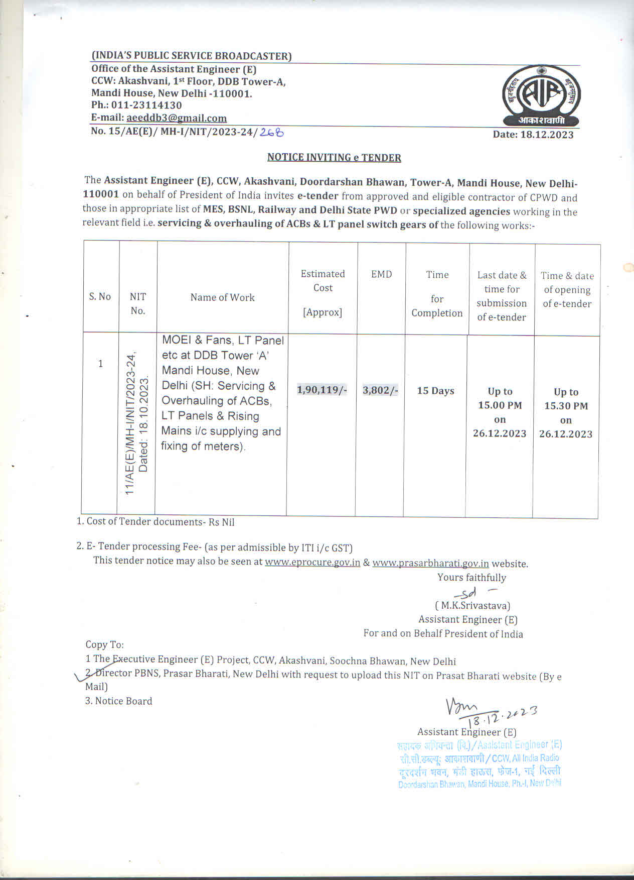 15/AE(E)/MH-I/NIT/2023-24 |
